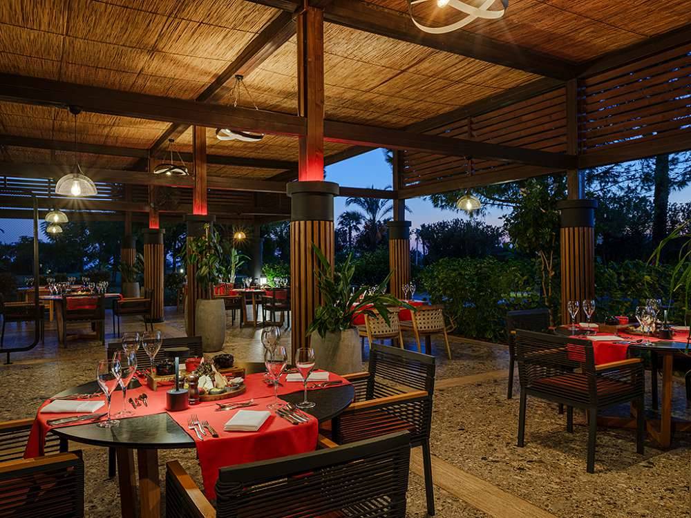 2015 yılında GA Design tarafından yeniden tasarlanan ana restoranımız; özel atmosferi, geniş yemek alanları, çocuk büfesi ile ve ustalarımız tarafından hazırlanan vejeteryan, diyet çeşitleri, Türk ve Dünya mutfağından lezzetli yemek seçenekleri hizmetinizdedir. Ana restoranımızın terası ise kuğuların, ördeklerin ve rengarenk balıkların yüzdüğü yapay bir göl üzerinde yer almaktadır.